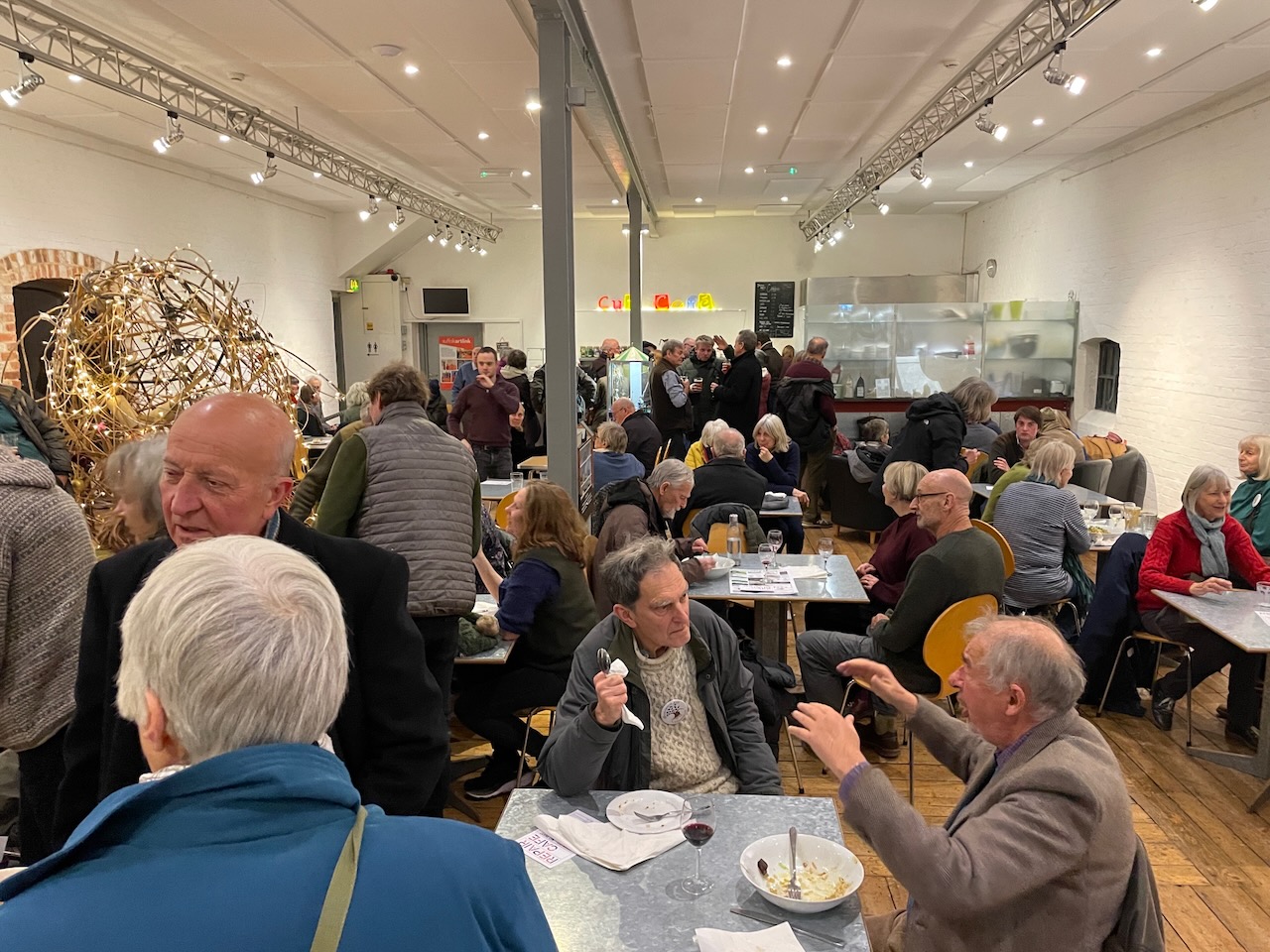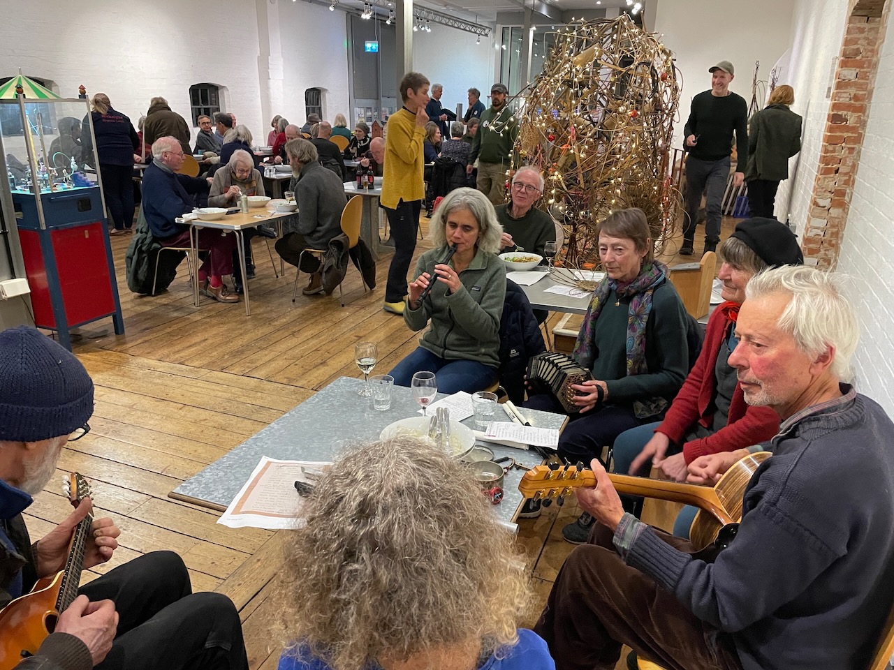 ‘An uplifting and inspiring evening’, said a farmer to us after seeing 6 Inches screening at the Cut. Despite the coldest of nights, over 120 came out. A great turnout, and lovely lively buzzy atmosphere enhanced by the Kitchen Band, and the hessian willow display by Wakelyns. Great to see the HASH team (with badges!) as well as a good range of farmers. Linking people and ideas, from Virigina to Geoffs veg box scheme, to one from Rothamsted Research Institute with his teenage grandson, people to Halesworth Ash, to different ways of seeing soil and land.